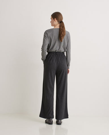Knit trousers. Wide cut. No fastening. Elastic waistband. Belt loops at waist. Two side pockets. Composition: 91% Polyester, 7% Viscose, 1% Silk, ...