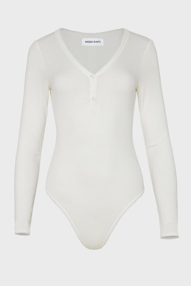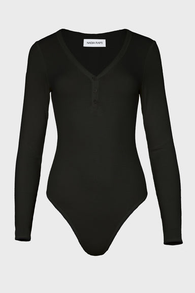 A refined ribbed bodysuit designed to contour the body with ease. Crafted from a soft viscose blend, the silhouette is close-fitting, offering a sm...