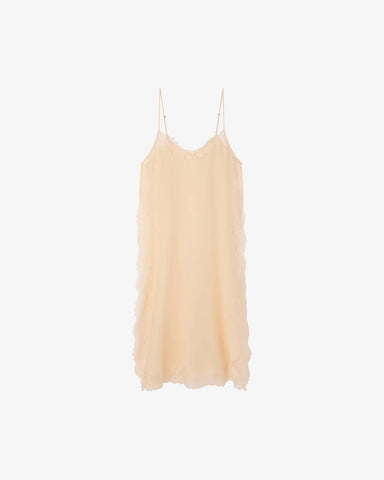 LONG SILK AND LACE TOP – NUDE A long top crafted from exquisitely delicate nude crepe de chine silk, with a fluid and refined drape. The thin, adj...
