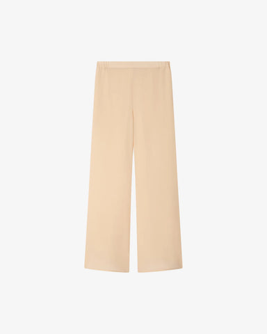 CREPE DE CHINE SILK TROUSERS – NUDE Flowing trousers in nude crepe de chine silk, with a light and subtly satiny texture. The flared leg elongates ...