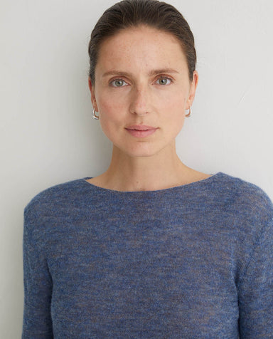 Thin bateau-neck sweater. Extra-fine alpaca and merino wool blend. Regular fit. Long sleeves. Composition: 35% Nylon, 33% Extra-fine alpaca, 32% Ex...