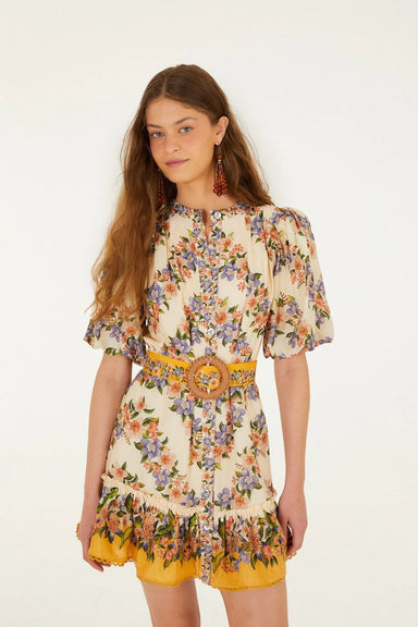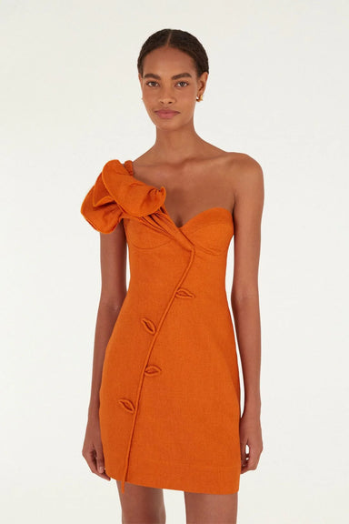 Embrace effortless charm in the Orange Flower Euroflax™ Premium Linen Mini Dress by FARM Rio. This playful piece features an asymmetrical neckline ...