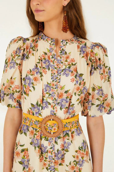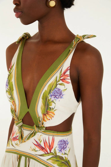 Embrace vibrant warmth with the Sand Tropical Scarf Maxi Dress by FARM Rio. Its fluid silhouette gently skims the body, enhanced by a playful V nec...