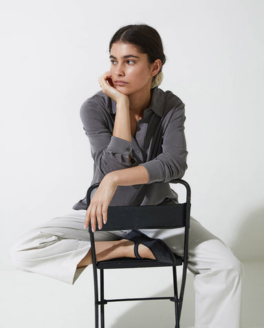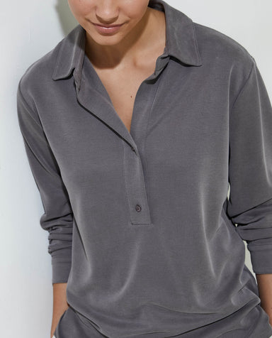 YerseKnit shirt. Modal blend. Polo with 2 buttons. Long sleeves with buttons. Composition: 70% Modal, 30% Polyester.Model is 175 cm tall wearing size S...