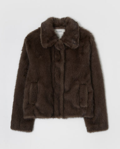 Short regular-fit coat. Faux fur. With lining. Collar. Long sleeves. Zip and snap fastening. Two side pockets. Composition: Exterior and Lining: 10...