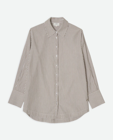 100% organic-cotton oversize shirt. Striped print. Wide cut. Collar. Long sleeves. Mother-of-pearl buttons. Button cuffs. Pleated back. Compositio...