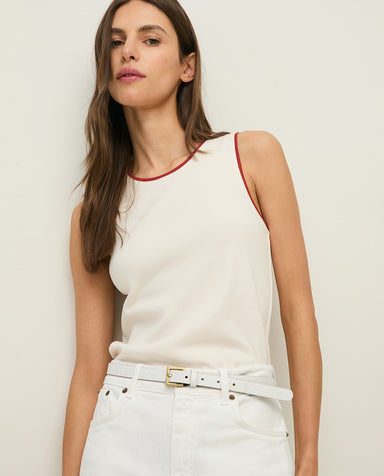 Ecru and terracotta cotton top. Slim fit. Round neckline. Wide straps. Contrasting neckline and armholes. Length from shoulder: 58 cm (size S). Com...
