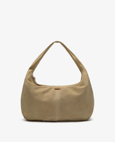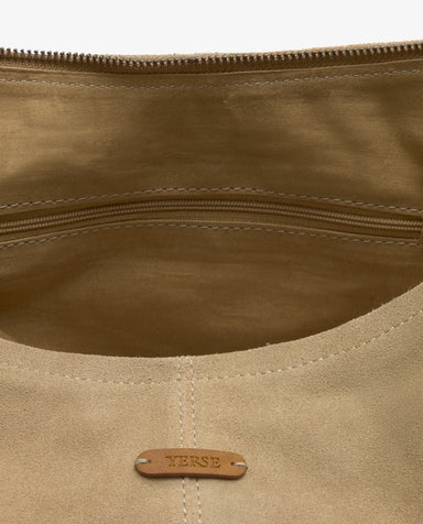 Hobo bag made of soft, 100% cowhide suede. Cotton lining, zip fastening and wide strap to carry comfortably on the shoulder. Inner pocket with zip...