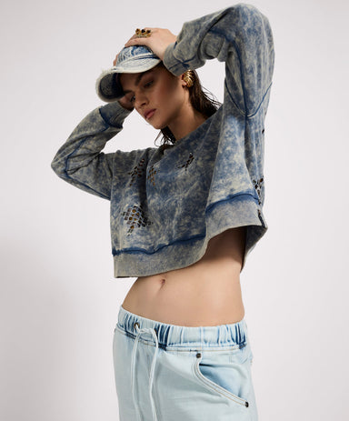 Streetwear meets stardust. This cropped fleece sweater brings all the edge of acid wash denim to your off-duty rotation—finished with metal star st...