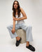 27316 - Roadhouse Mid Waist Wide Leg Drawstring Denim Jean - Blue Latte