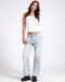 The blue latte ROADHOUSE MID WAIST WIDE LEG DRAWSTRING DENIM JEANS bring a bold twist to a relaxed silhouette.