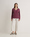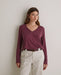 Modal blend T-shirt. Wide, flowy cut. V-neck. Long sleeves. Side slits at the hem.