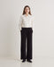 Knit corduroy trousers. Cotton blend. Wide cut. No fastening. Elastic waistband. Two side pockets.