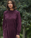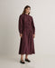 Midi dress. Viscose and cotton blend. Regular fit. High neck. Long sleeves. Button cuffs Zip close. Gathering and embroidery.