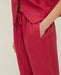 Raspberry linen trousers. Wide leg, mid rise. Elastic waistband with drawstring. Side pockets.