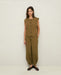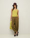 Khaki wide-leg trousers. Cotton. Wide cut, mid rise. Elastic waistband. Two side pockets.