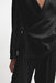 A refined wrap blazer crafted from fluid satin with a soft, understated sheen. Designed with a deep V neckline, structured shoulders and a clean, elongated line through the body. The wrap closure ties gently at the waist, allowing for subtle adjustment and a relaxed yet precise fit. An elegant layering piece that balances tailoring with softness.