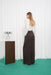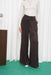 The Inner Voice Pants are wide-leg trousers in deep chocolate brown with a subtle jacquard floral pattern. They feature a mid-rise waist, pleated front, side pockets, and a single button with zip closure. The long, flowing cut adds comfort and style for any occasion.