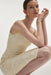 A balance of luminosity and structure. The Petra Dress is crafted from sequin tweed, designed to contour the silhouette with clarity and refinement. The clean, sculpted line is complemented by delicate straps and a defined neckline, creating a composed and confident form. Subtle shimmer moves across the surface with light, while the tailored construction maintains a precise, elongated shape. The slit at the back introduces ease of movement while preserving the dress’s sharp, minimal profile.