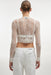 A delicate lace cardigan designed to add effortless elegance to any look. Cut in a cropped silhouette with long sleeves, it softly follows the body while maintaining a light, airy feel. Crafted from soft lace fabric, it offers subtle transparency and refined texture, making it perfect for layering over dresses, tops, or bodysuits.