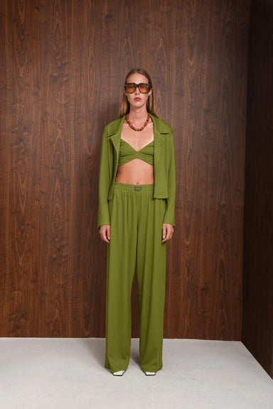 The Dynasty trousers are high-waisted and tailored with a pleated front and side pockets. Made from soft, lightweight fabric, they fall in a straig...