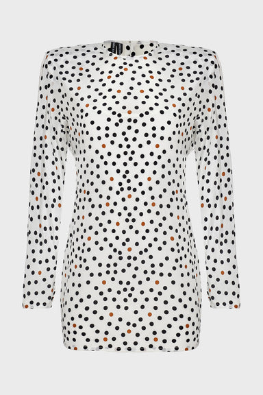 The Dot Com mini dress is playful and polished, with a fitted silhouette that flatters the body. With a lightweight fabric, long sleeves, and a hig...