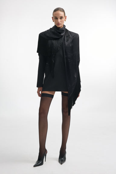 The Hero Stole is made from soft satin that drapes smoothly over the shoulders. Long fringed edges add movement and texture, making it a standout l...