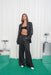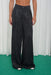 The Inner Voice Pants are wide-leg trousers in deep chocolate brown with a subtle jacquard floral pattern. They feature a mid-rise waist, pleated front, side pockets, and a single button with zip closure. The long, flowing cut adds comfort and style for any occasion.