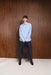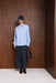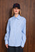 Bold Shirt, a classic blue shirt with white stripes made from soft cotton. Designed with a relaxed fit, dropped shoulders, button-down front, and wide cuffs. It features a pointed collar and a small embroidered logo on the chest. Lightweight and easy to wear, it pairs perfectly with both tailored and casual pieces.
