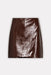 Exist Skort, high-waisted faux leather skort with a crocodile-embossed texture and shiny finish. Features a wrap front design with hidden side zip and built-in shorts underneath for comfort. Fully lined for a smooth fit and easy movement. A modern piece that combines the look of a skirt with the practicality of shorts.