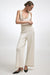 High-waisted trousers in a fine ribbed knit.Cut with a relaxed, elongated leg and a clean, straight fall.Finished with subtle contrast trim at the waistband and hem.Soft structure with fluid movement. Designed to sit effortlessly on the body.
