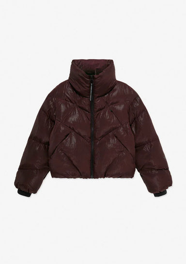 The Nebula is a short puffer jacket that features a two-layer fabric with a translucent outer layer and a dense textured inner surface. A cire fini...