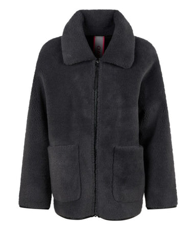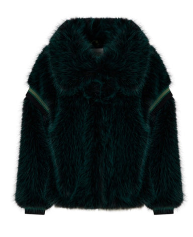 JacketFaux furRegular fitWide collarHook and loop closureSlanted pocketsFancy ribbing on cuffs and shouldersPolyester lining -Dry cleaning only-