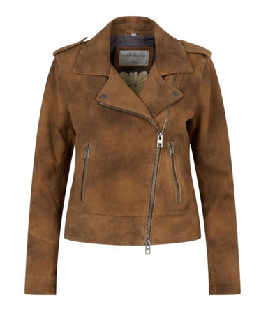 JOELLA - TOBACCO- GENUINE GOAT SUEDE SHORT JACKET