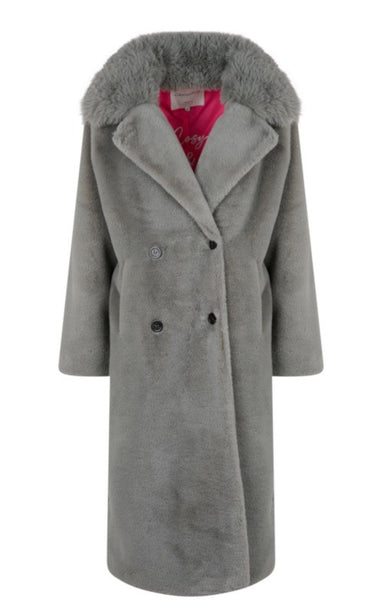 Long coatFaux furStraight cutWide lapel collarDouble-breasted central closureVertical pocketsInside pocket100% polyester lining -Dry cleaning only-