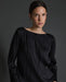 Pleated blouse. Wide cut. Bateau neck. Long sleeves.
