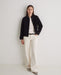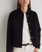 Short coat. Double-faced blend of wool and recycled fibres. Long sleeves with adjustable button. Faux-tortoiseshell button fastening. side pockets.