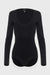 Long sleeve bodysuit crafted from a soft and stretchy rayon–nylon blend, designed for a smooth, body-contouring fit. Features a rounded neckline and minimal seams for a sleek silhouette.