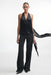 Satin halter top with an open back and statement fringe details. A sleek and modern piece that adds movement and elegance to your look, perfect for evening outings or special occasions.