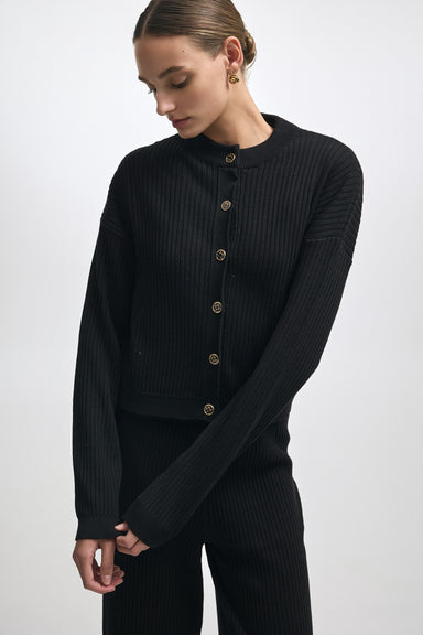 A softly structured cardigan knitted in a fine rib for a fluid, close-to-the-body fit. Designed with a clean round neckline, elongated sleeves and ...