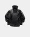 A stylish bomber jacket in panama weave faux leather for texture and edge.