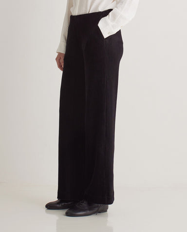 Knit corduroy trousers. Cotton blend. Wide cut. No fastening. Elastic waistband. Two side pockets. Composition: 68% Cotton, 28% Polyester, 4% Elas...
