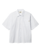 Loose fit short sleeve shirt with a relaxed, boxy silhouette. Features a classic collar, button front, and a single chest pocket. Subtle vertical stripes keep the front clean, and "I Don't Wok Here" print on the back keeps it interesting.