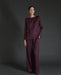 Pleated trousers. Wide cut. No fastening. Lurex effect elastic waistband. Two side pockets.